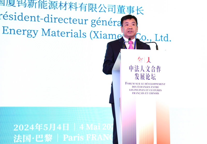 5月4日,厦门厦钨新能源材料股份有限公司董事长杨金洪在中法人文合作发展论坛上致辞。辛北 摄
