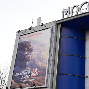 这是在俄罗斯首都莫斯科“莫斯科电影”旗下的宇宙电影院外拍摄的《流浪地球2》电影宣传海报。新华社记者 华迪 摄