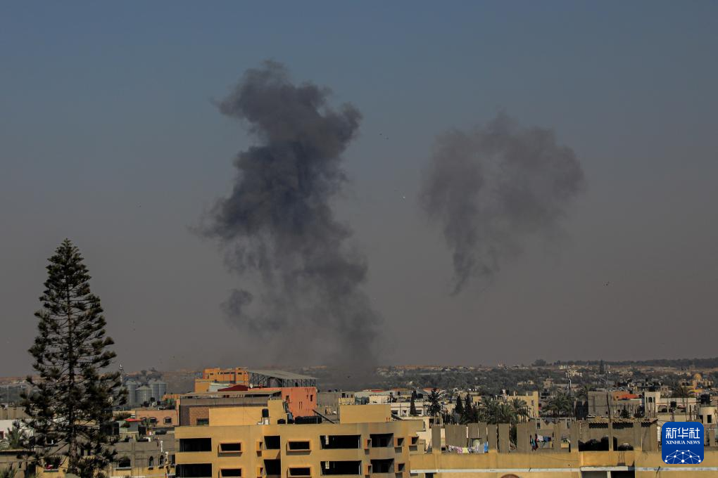 这是6月5日在加沙地带中部拍摄的以军袭击后升起的浓烟。