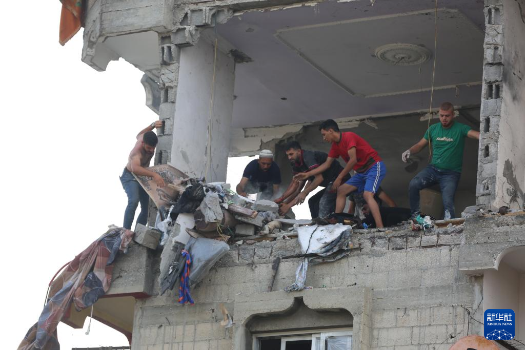 6月5日,在加沙地带中部,人们在以军袭击后进行搜救。