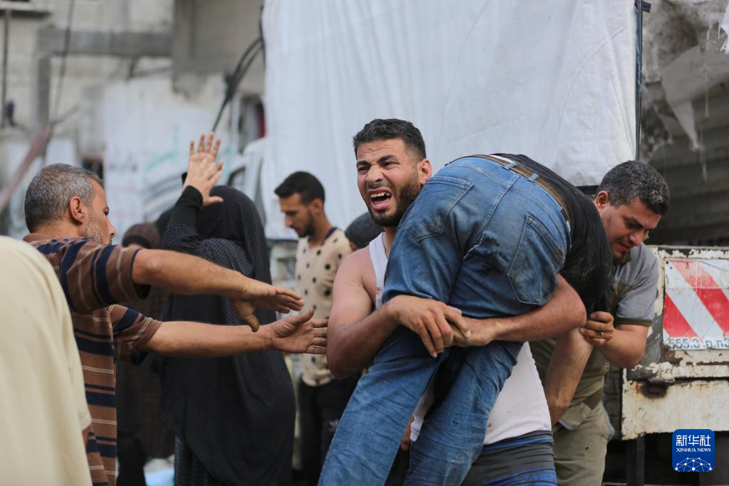 6月5日,在加沙地带中部,人们在以军袭击后哭泣。