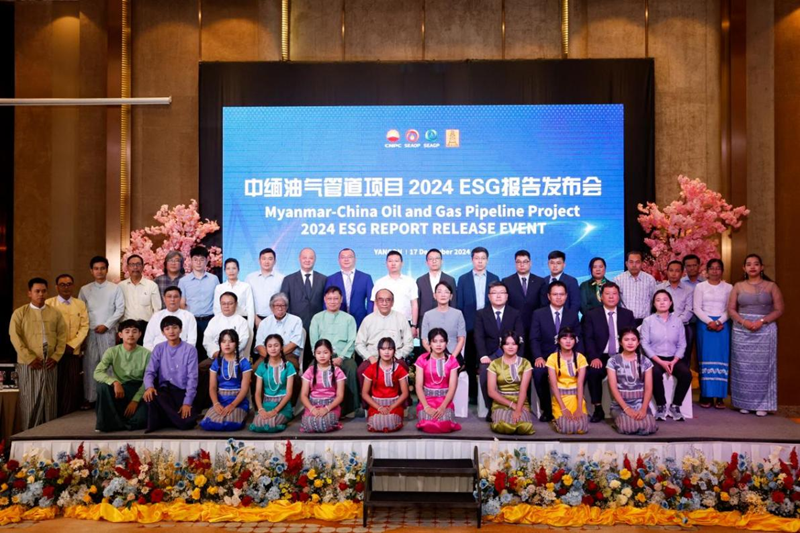 12月17日,嘉宾在缅甸仰光举行的《中缅油气管道项目2024环境、社会与治理(ESG)报告》发布会合影。苗觉梭 摄