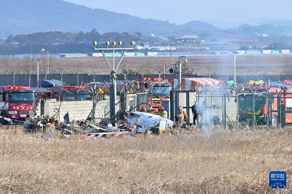这是12月29日在韩国务安机场拍摄的事故救援现场。新华社/纽西斯通讯社