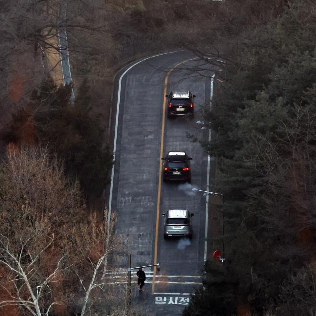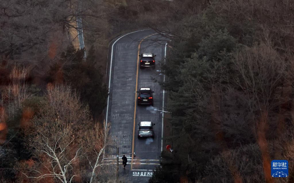 1月3日上午,韩国高级公职人员犯罪调查处工作人员乘坐的车辆驶向首尔龙山区汉南洞的总统官邸。