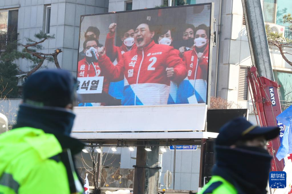 1月3日,尹锡悦的支持者在韩国首尔龙山区汉南洞的总统官邸附近举行集会,警察在集会附近执勤。