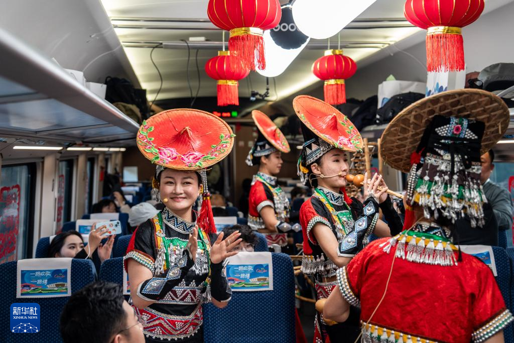 新华社昆明1月14日电 题:一路欢歌一路情——中老铁路上的跨国文化联欢演出