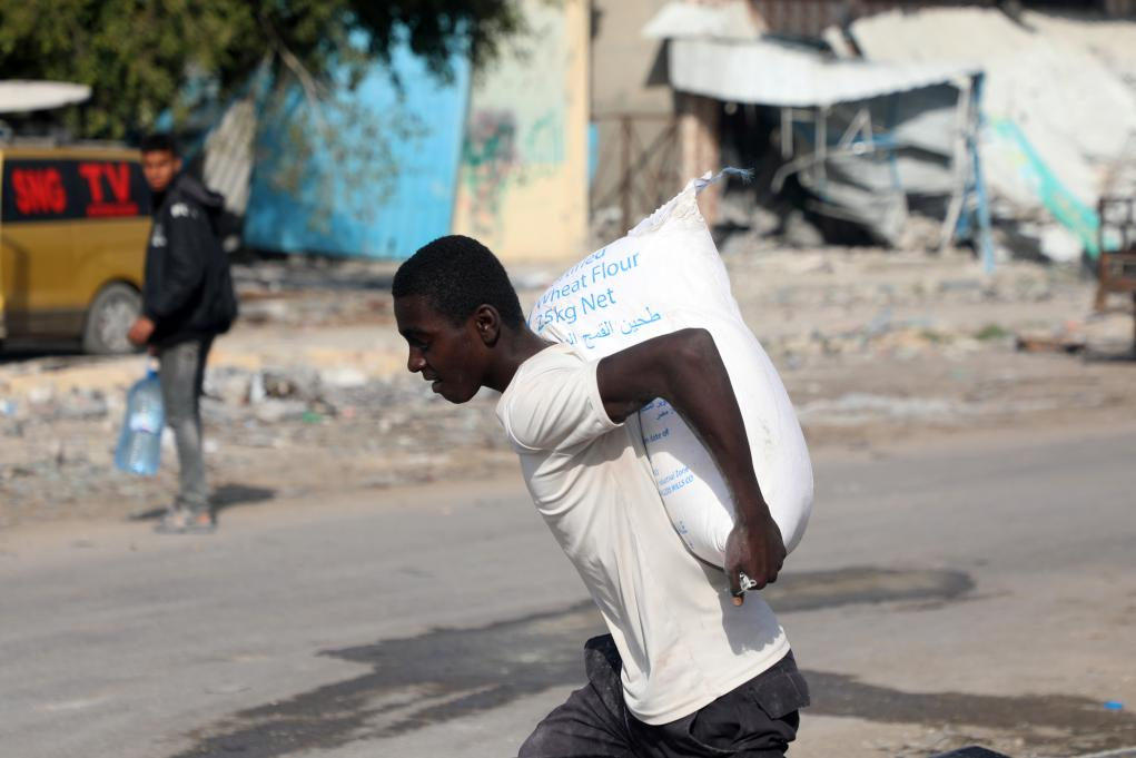 1月19日,在加沙地带,一名男子领取救援物资。新华社发(里泽克·阿卜杜勒贾瓦德摄)