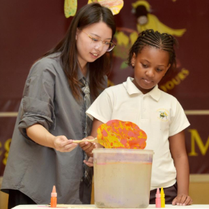 1月29日,在博茨瓦纳首都哈博罗内的丽海国际小学,当地学生体验制作中国漆扇。