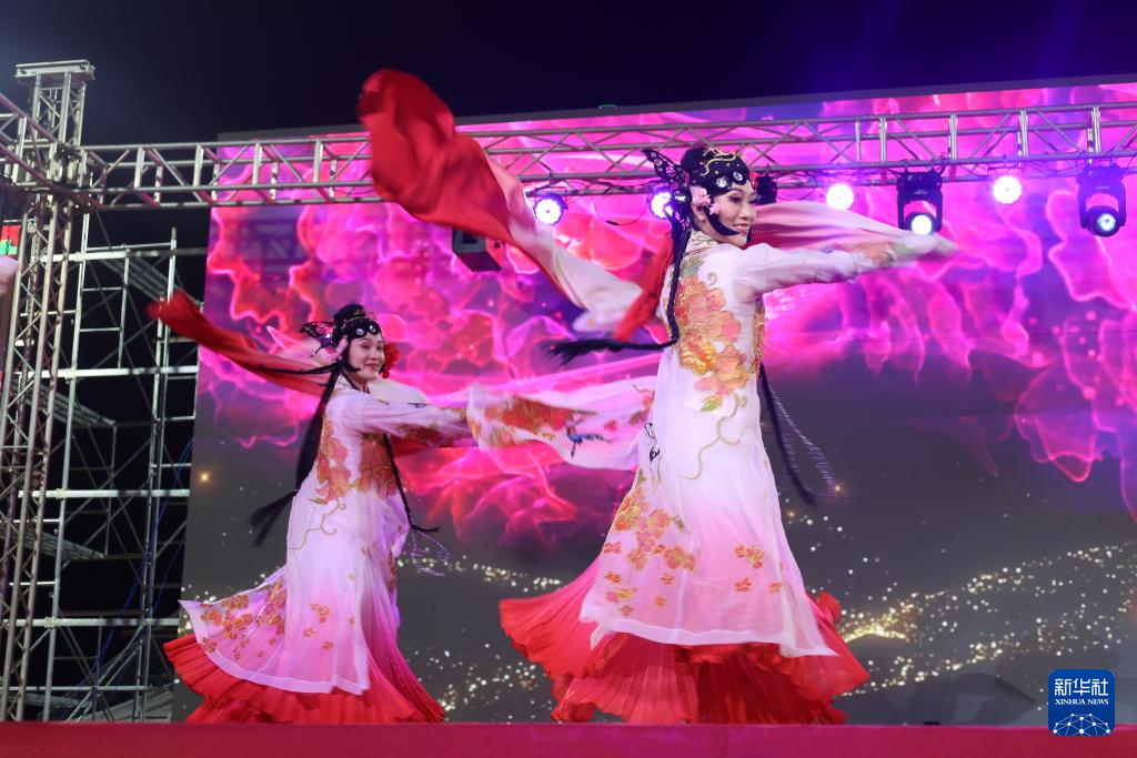 2月9日,两名中国舞蹈演员在加纳首都阿克拉举行的元宵节庆祝活动上表演。新华社发(赛特摄)