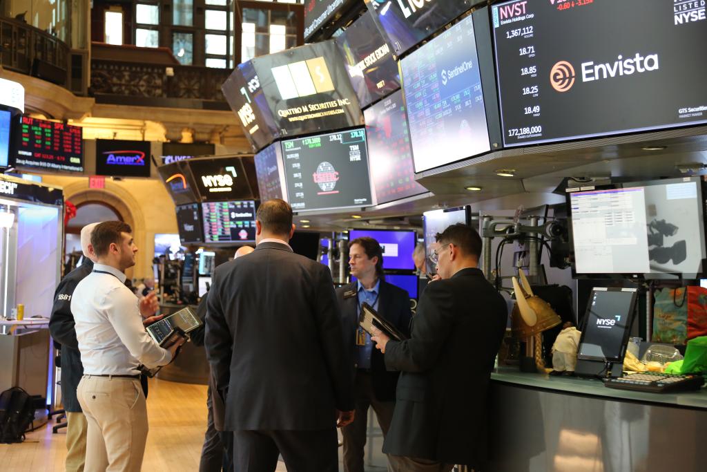 图为3月4日,交易员在美国纽约证券交易所交易大厅工作。新华社记者刘亚南摄