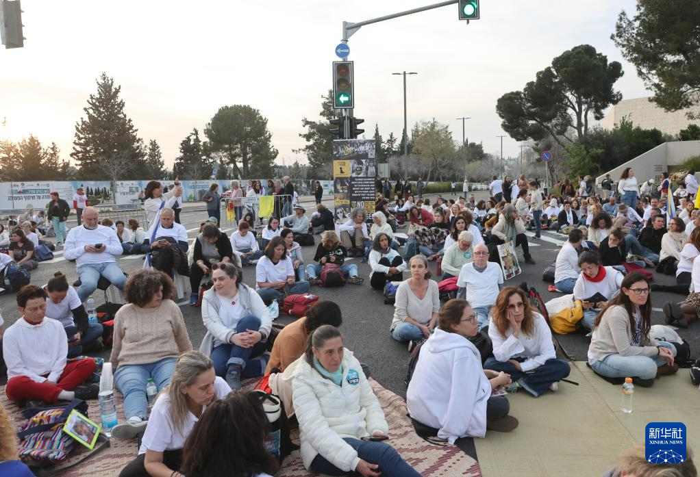 3月25日,人们在位于耶路撒冷的以色列议会附近参加示威活动。 新华社发(吉尔·科恩·马根摄)