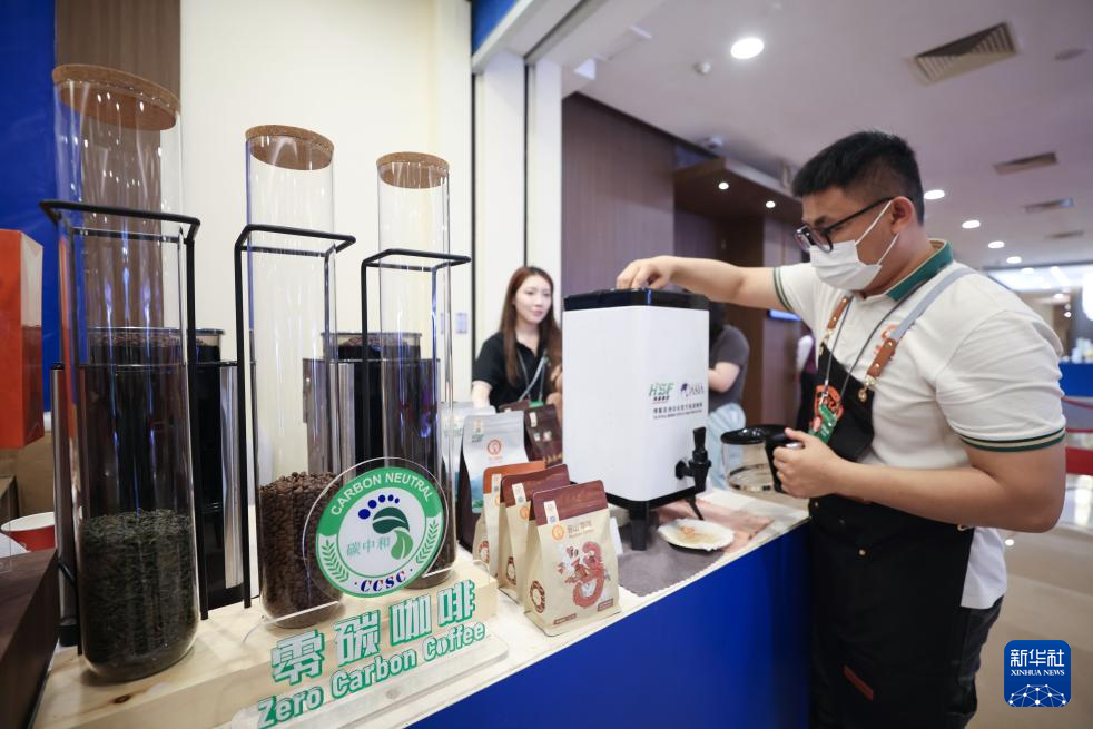 这是3月26日拍摄的在博鳌亚洲论坛新闻中心海南农垦热作产业集团有限公司展示的经碳中和认证的茶产品。