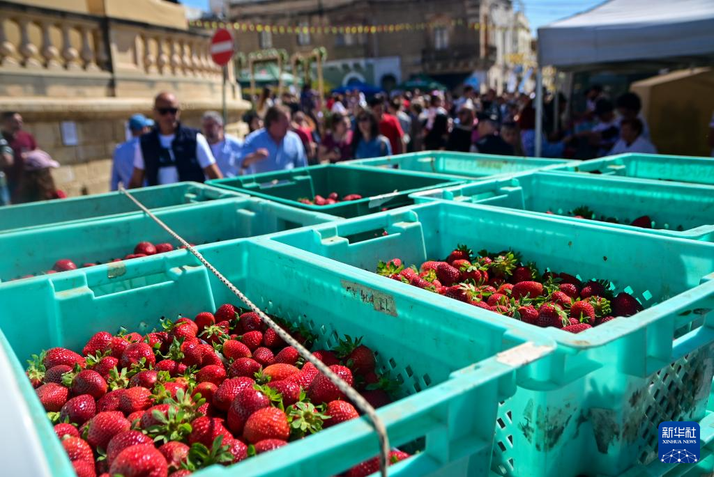 地中海岛国马耳他27日在北部城市姆贾尔举行一年一度的草莓节活动,吸引大量马耳他当地民众和外国游客参加。人们在活动期间不仅可以品尝到刚刚采摘的新鲜草莓,还可以品尝用草莓制作的各种甜品、饮品等。
