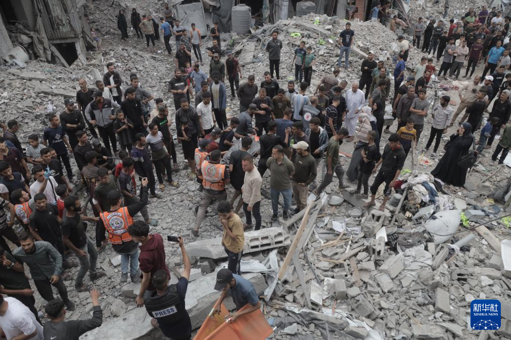 5月15日,在加沙地带北部杰巴利耶难民营,人们在以军轰炸后开展救援。