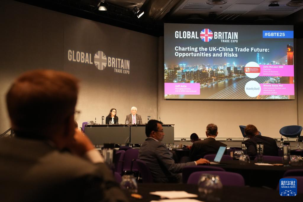 5月29日,与会者在英国伦敦举行的全球英国2025年贸易展会上聆听嘉宾分享。新华社记者 郑博非 摄