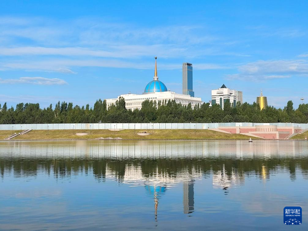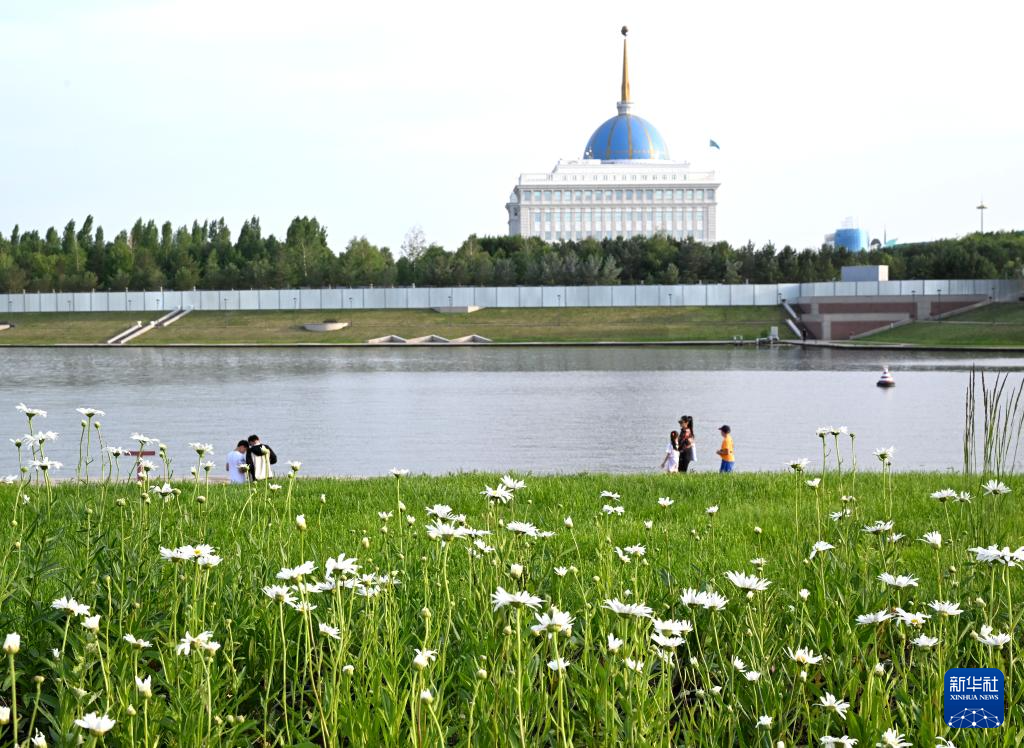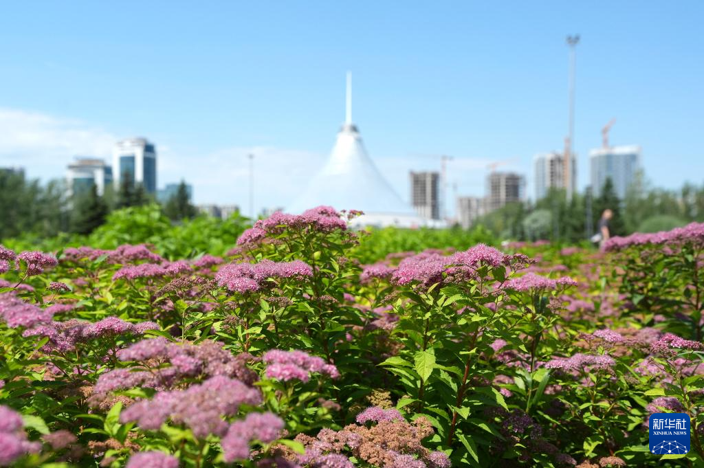 夏日的阿斯塔纳,天气晴好、鲜花盛开,天际线在蓝天白云的映衬下格外美丽。