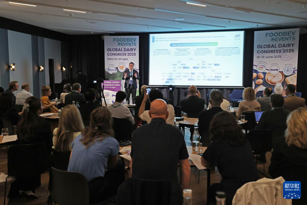 这是6月18日在荷兰阿姆斯特丹拍摄的第十八届全球乳业大会现场。新华社记者 赵丁喆 摄