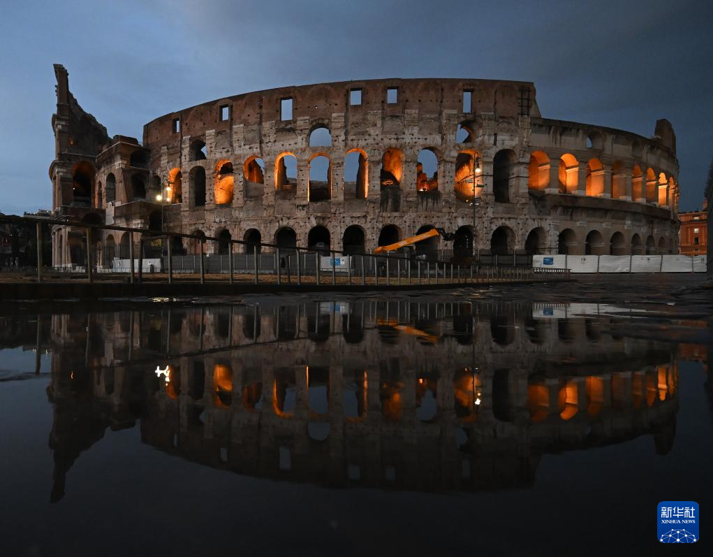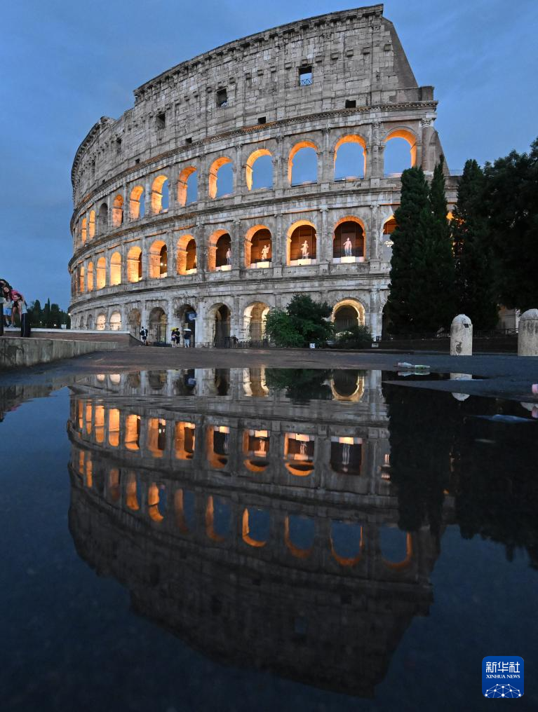 这是7月13日在意大利罗马拍摄的大雨后的斗兽场。