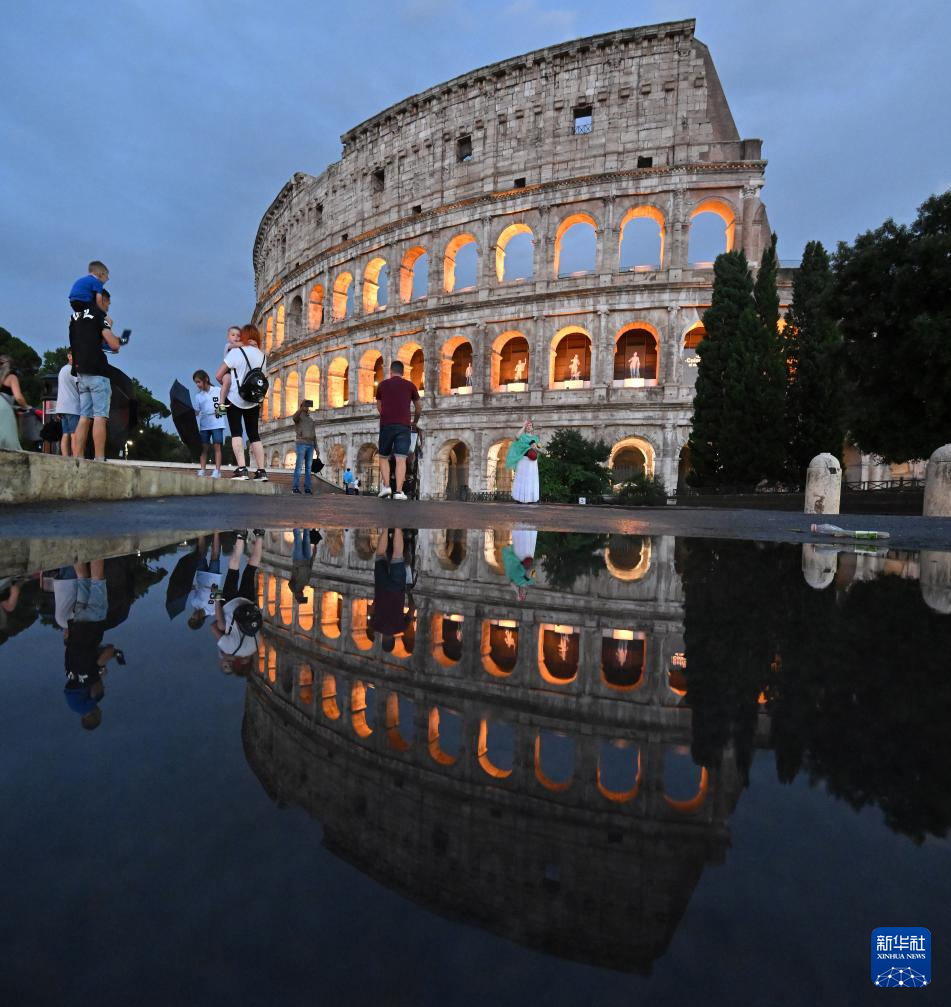 7月13日,在意大利罗马,人们在大雨过后来到斗兽场。