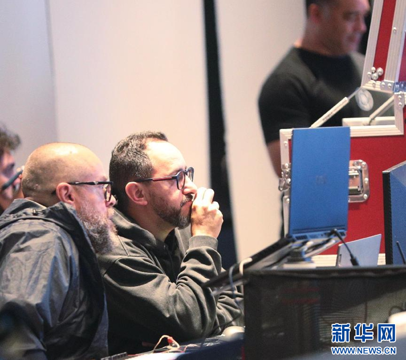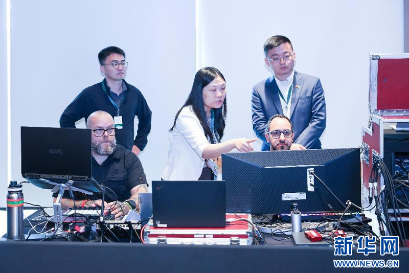 当地时间7月15日,技术人员正在进行论坛音频调试。(杨磊 摄)