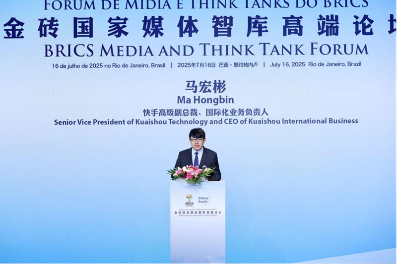 7月16日,以“共创金砖未来 共谱南方新篇”为主题的金砖国家媒体智库高端论坛在巴西里约热内卢举行。快手高级副总裁、快手国际化业务负责人马宏彬在论坛开幕式发言中表示,金砖合作是全球南方沟通、协作的重要平台,数字经济正在成为全球南方的新纽带。