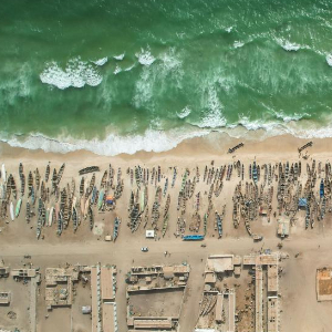 这是6月17日在毛里塔尼亚首都努瓦克肖特拍摄的渔港(无人机照片)。