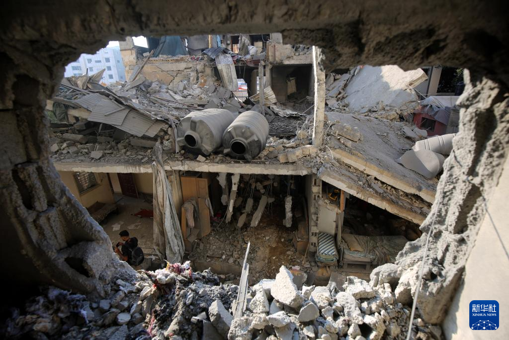 这是7月23日在加沙城南郊泰勒哈瓦地区拍摄的以军空袭后的废墟。新华社发(里泽克·阿卜杜勒贾瓦德摄)