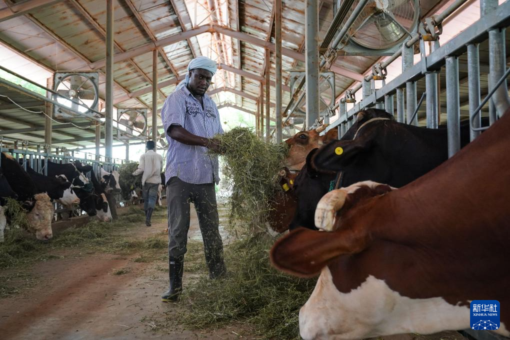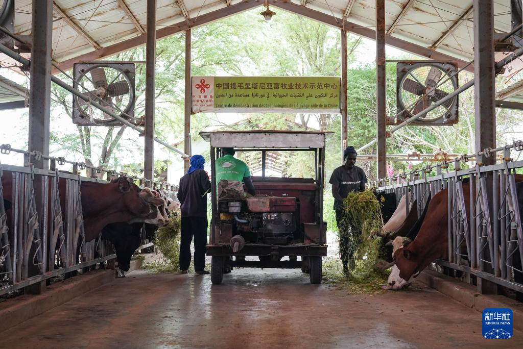 毛里塔尼亚80%以上的国土被沙漠覆盖,炎热干旱,土壤贫瘠,风沙肆虐,植物不易生存。2017年,中国援毛里塔尼亚畜牧业技术示范中心技术合作项目在伊迪尼村正式启动。多年来,中国专家成功引种紫花苜蓿,实现规模化种植,解决了当地饲草料短缺问题。随后,多个牧草品种陆续在撒哈拉沙漠推广。在奶牛养殖与育种方面,示范中心与国内牧业公司开展技术合作,选育适应性强、耐粗饲的种牛,提高了牧区的养殖效益,为改善牧民生活、推动当地畜牧业可持续发展做出积极贡献。