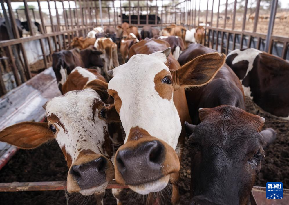 7月18日,在毛里塔尼亚伊迪尼村,中国援毛里塔尼亚畜牧业技术示范中心专家检查牛群的进食和生长情况。