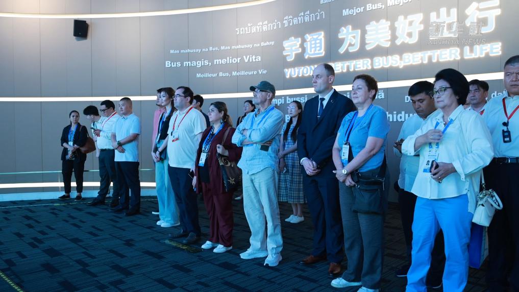 峰会期间,与会外国嘉宾代表来到位于郑州的宇通客车公司参观访问。