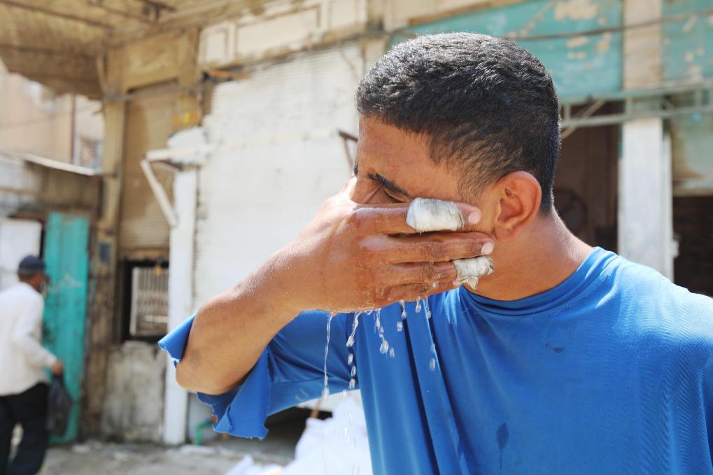 7月28日,一名男子在伊拉克首都巴格达街头用水洗脸降温。新华社发(哈利勒·达伍德摄)