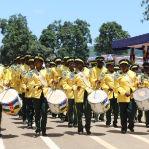 8月13日,在中非共和国首都班吉,军乐团参加阅兵式。