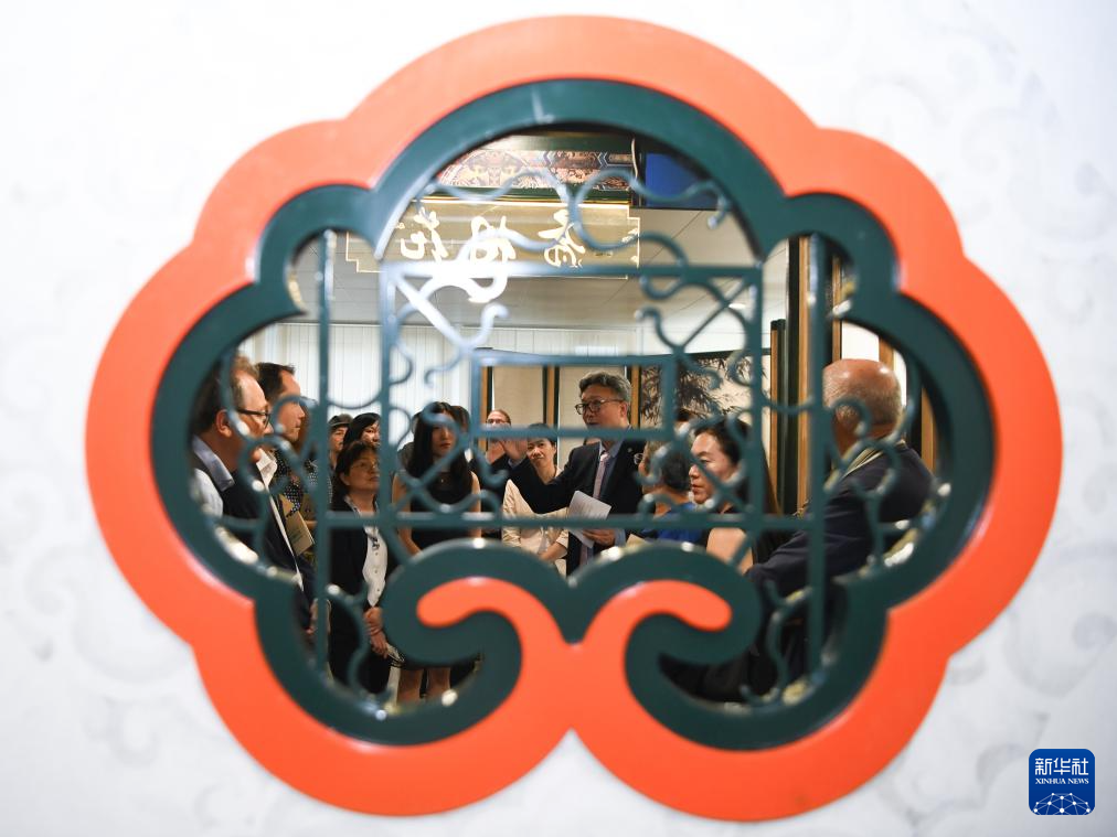 8月22日,在瑞士伯尔尼中国文化中心,嘉宾在 “安善萃锦——中式生活美学展”开幕式上聆听讲解。新华社记者 连漪 摄