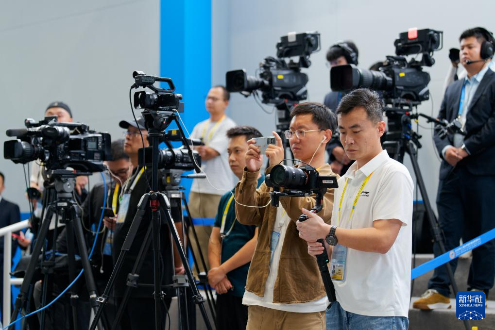 8月30日,在天津梅江国际会展中心,2025年上海合作组织峰会新闻中心举行陕西省专场吹风会,陕西省人民政府副省长、陕西省杨凌农业高新技术产业示范区管理委员会主任(兼)武文罡、陕西省人民政府外事办公室主任姚红娟、陕西省农业农村厅副厅长何建军、陕西省杨凌农业高新技术产业示范区党工委副书记、管委会常务副主任何玲介绍上海合作组织农业技术交流培训示范基地的建设运营及相关合作成果等情况,并回答记者提问。这是记者在吹风会现场采访。