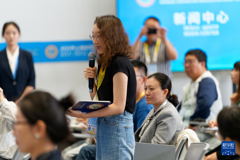 8月30日,在天津梅江国际会展中心,2025年上海合作组织峰会新闻中心举行陕西省专场吹风会,陕西省人民政府副省长、陕西省杨凌农业高新技术产业示范区管理委员会主任(兼)武文罡、陕西省人民政府外事办公室主任姚红娟、陕西省农业农村厅副厅长何建军、陕西省杨凌农业高新技术产业示范区党工委副书记、管委会常务副主任何玲介绍上海合作组织农业技术交流培训示范基地的建设运营及相关合作成果等情况,并回答记者提问。这是记者在吹风会现场提问。