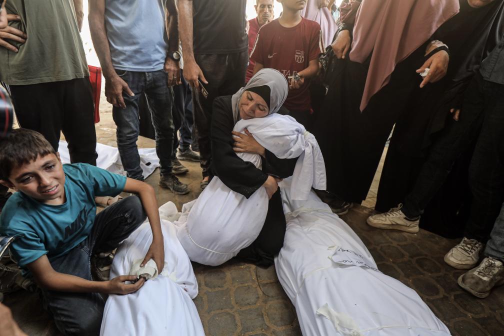 9月3日,在加沙城的希法医院,巴勒斯坦人为在以军袭击中丧生的亲友送葬。新华社发(里泽克·阿卜杜勒贾瓦德摄)