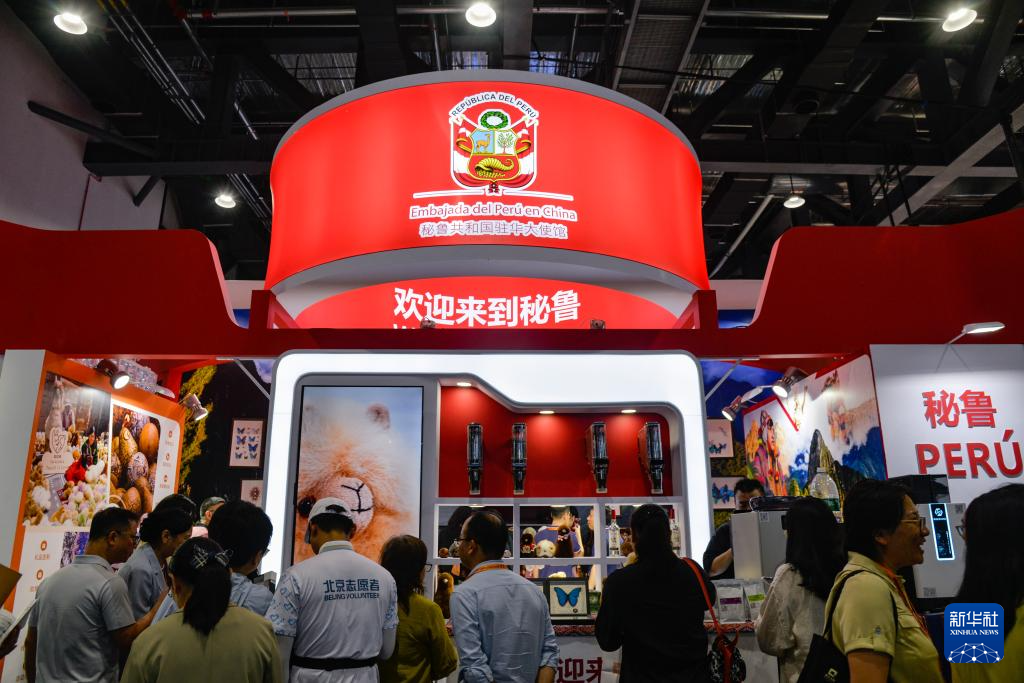 9月10日,参展者在2025年服贸会主题展秘鲁展台参观、咨询。