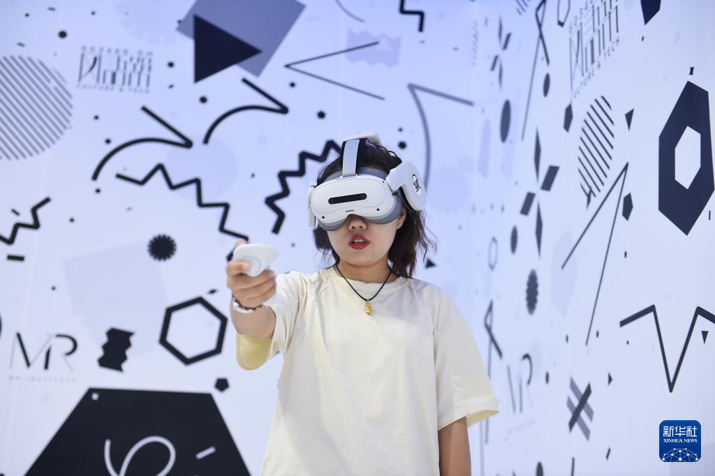 9月11日,参展者在文旅服务专题展区海淀展厅体验沉浸式VR大空间项目。