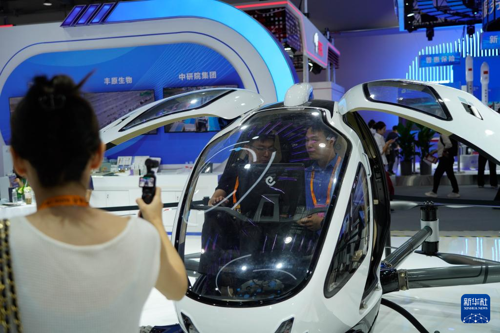 2025年中国国际服务贸易交易会9月10日至9月14日在北京举办,众多科技产品亮相展区,吸引观众驻足参观。