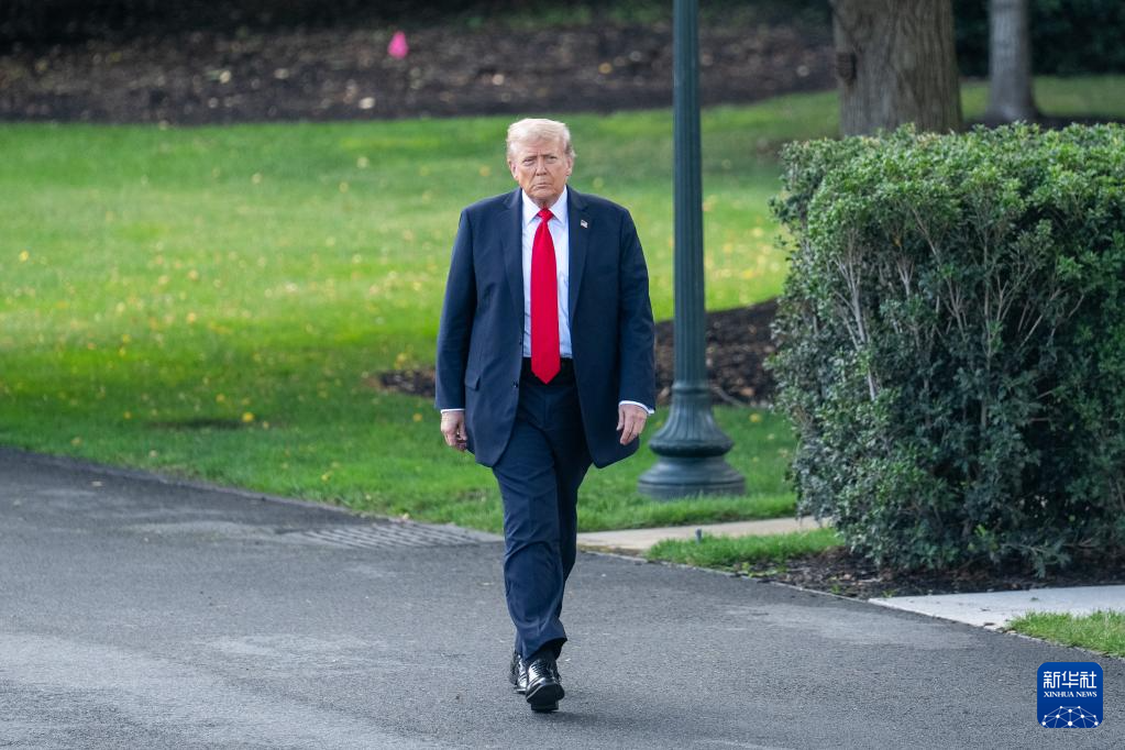 9月11日,在美国首都华盛顿白宫,美国总统特朗普走向记者准备回答提问。新华社记者 胡友松 摄