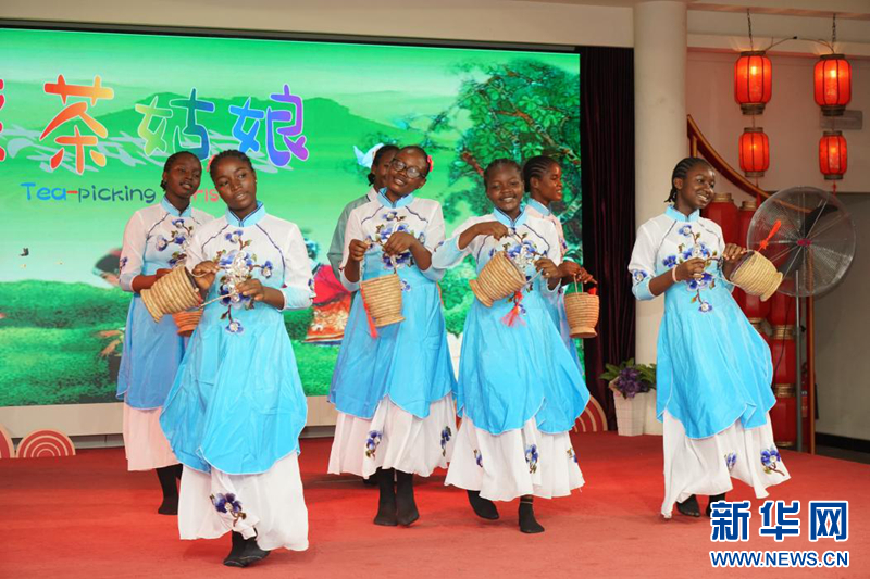 9月11日,“中国之角”学生参加赠书活动时表演中国文化节目。(尼日利亚中国文化中心供图)