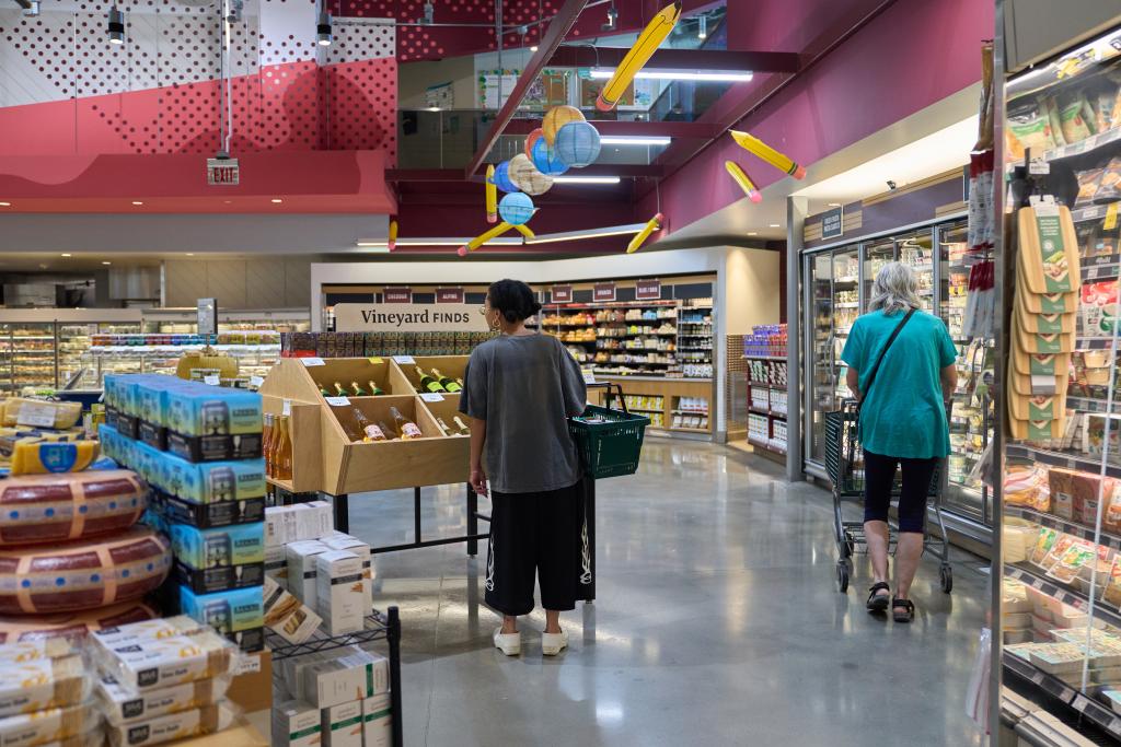 8月12日,顾客在美国洛杉矶的一家超市选购日常用品。新华社/欧新