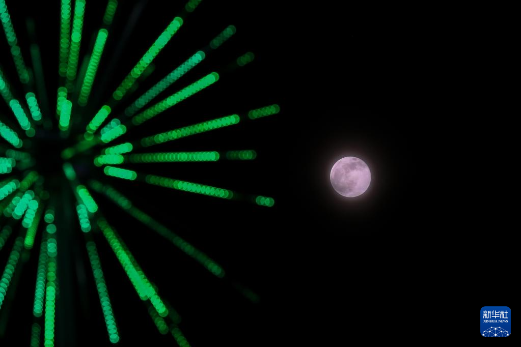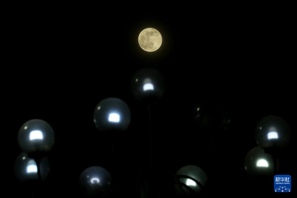 这是10月6日在叙利亚首都大马士革拍摄的月亮。