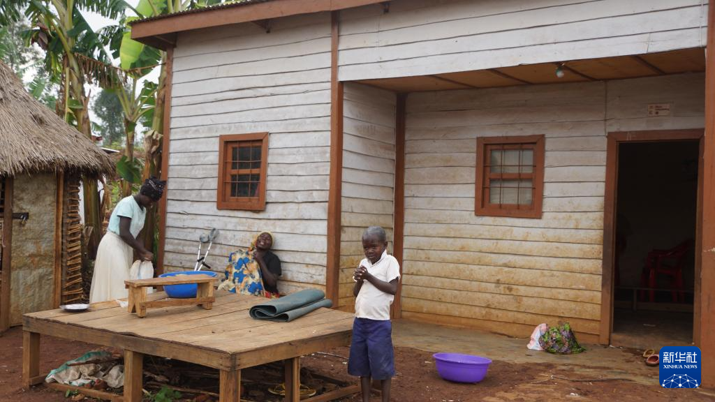 在刚果(金)东部南基伍省卡莱亥地区的罗阿戈山丘上,一排排木质房屋在阳光下整齐排列。34岁的当地妇女奥德特·尼亚孔古拄着拐杖,微笑着迎接记者。