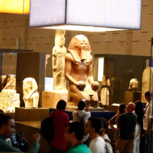 10月14日,游客在位于埃及吉萨省的大埃及博物馆参观。