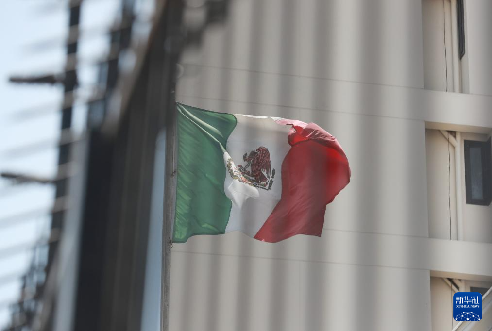 这是11月4日在秘鲁首都利马拍摄的墨西哥驻秘鲁大使馆内的墨西哥国旗。新华社发(玛丽安娜·巴索摄)