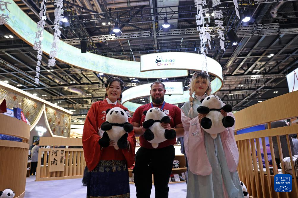本届展会中国展区以“中国旅游:创新融合 绿色发展”为主题,总面积达400多平方米,创历届新高。展区设计融合了一系列有代表性的中国文化元素,如熊猫形象、民族服饰、经典古诗词等,以兼具环保理念与文化质感的竹材打造出一条沉浸式文化长廊,多维度展示13个参展省、自治区、直辖市的文旅特色。