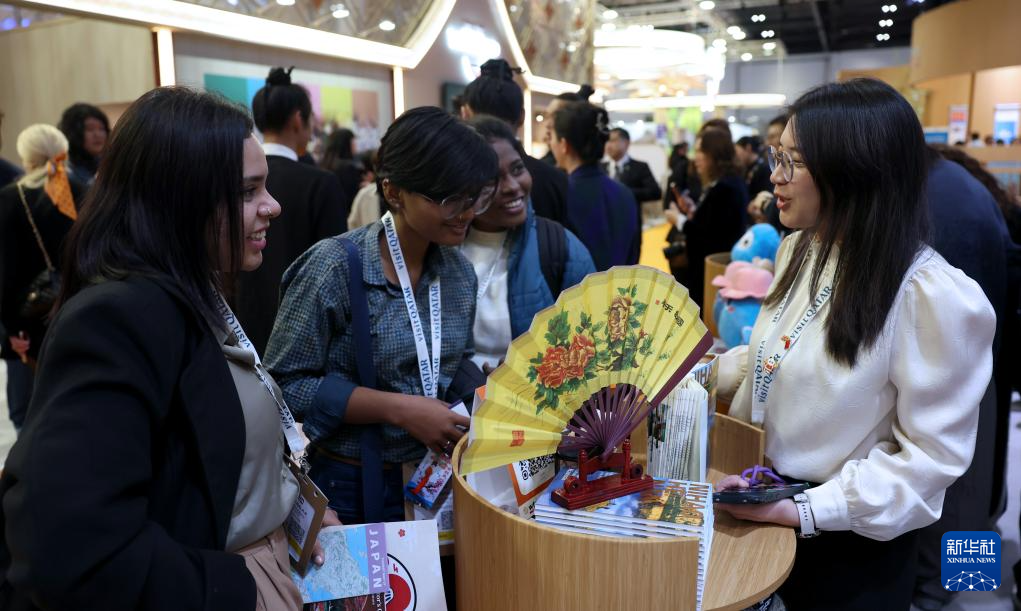 11月4日,人们在2025伦敦世界旅游交易会中国展区参观。新华社记者 李颖 摄