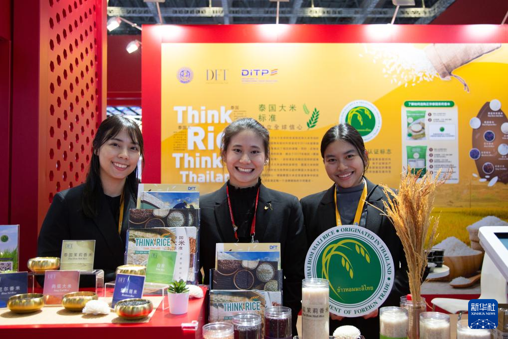 这是11月5日在第八届进博会国家展泰国馆拍摄的大米产品样品。