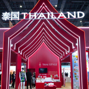 这是11月5日拍摄的第八届进博会国家展泰国馆一角。